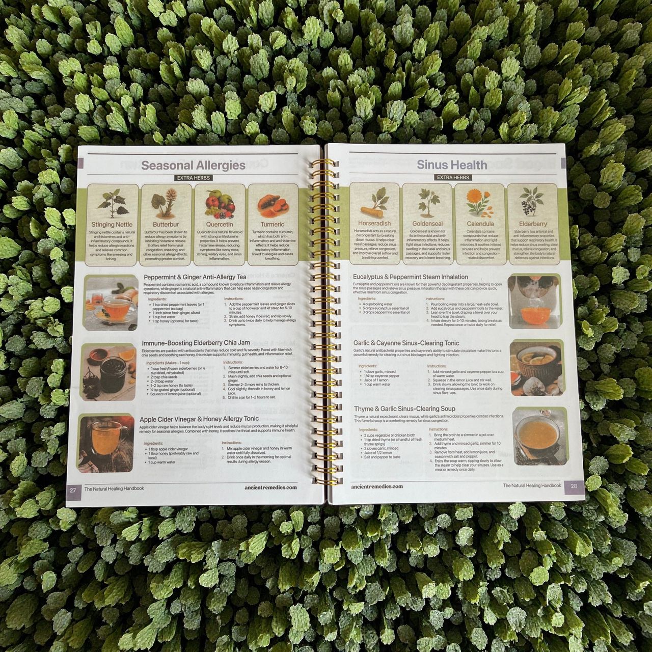 The Natural Healing Handbook by Ancient Remedies Press is just what it says, a ring bound book with ancient remedies in it, that includes recipes to aid you in your search for healing.